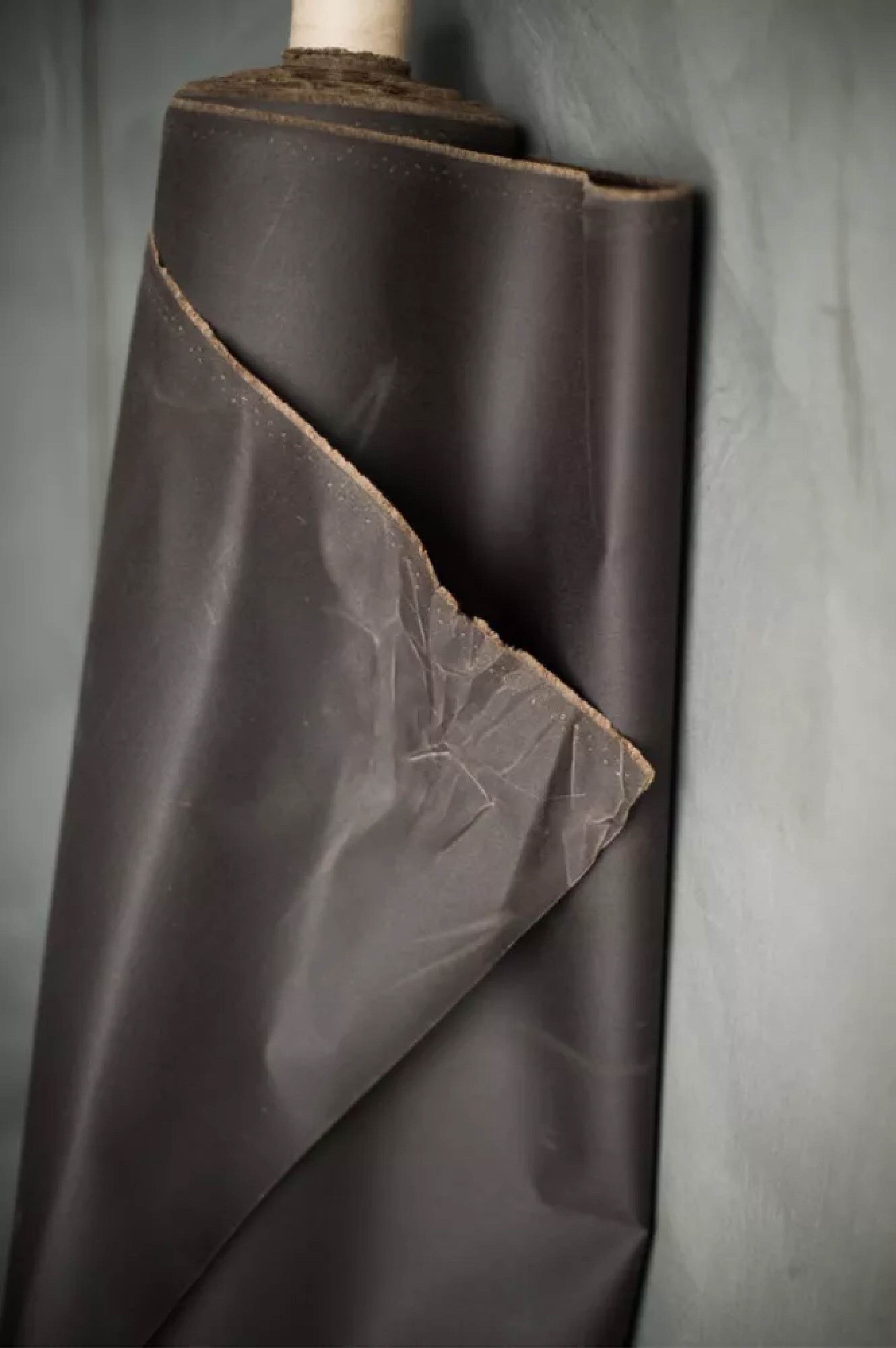 This is the best quality traditional oilskin (the real thing)!  Made in the UK (with sustainably-grown cotton), and finished to age and wear beautifully.  It has a firm hand, and this fabric will give a distressed, worn appearance when handled, giving it a fast-tracked, unique vintage aesthetic.  A dark chocolate brown shade. Ideal for bags and accessories, and particularly good for our 137 Australian Drover's Coat, as the fabric is waterproof/resistant.
