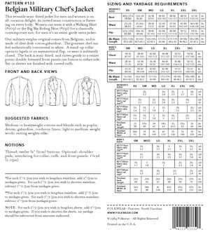 Our military surplus original comes from Belgium, and is made of olive drab cotton gabardine. The gourmet chef can feel authentically continental in white. A stand up collar opens to lapels or an asymmetrical flap, or wear it militantly closed. The back is semi-fitted, and curves gently to a center point; double-breasted front panels can button to either side. Set-in sleeves are finished with curved cuffs.